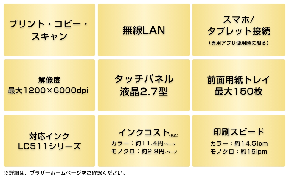 ●対応消耗品:LC511BK/LC511C/LC511M/LC511Y