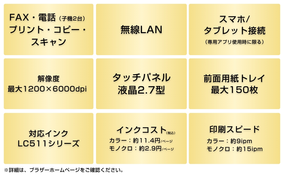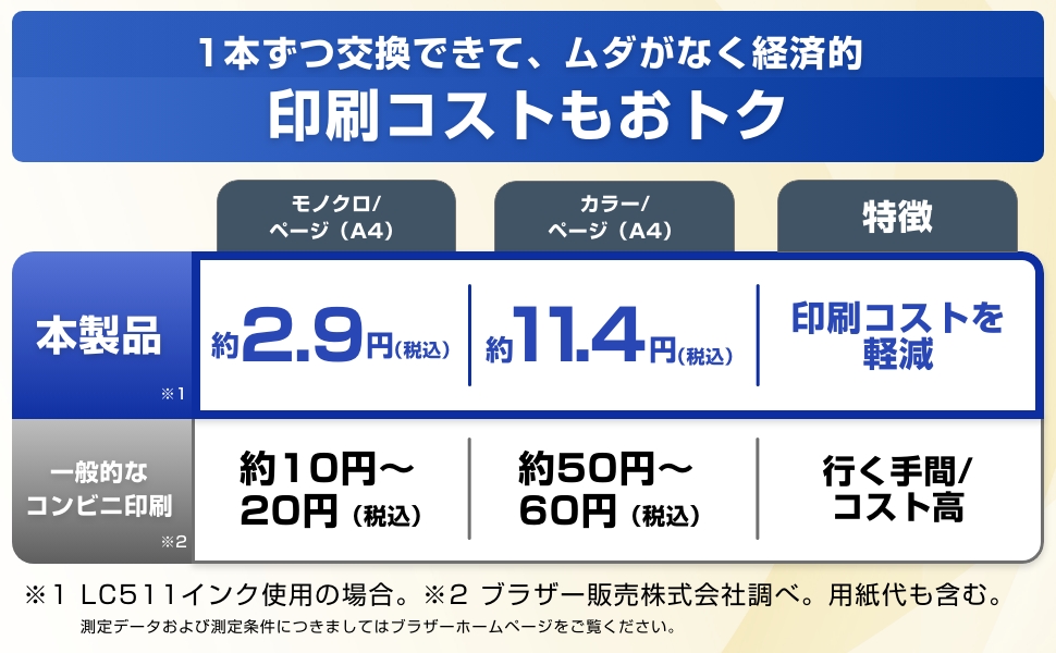●対応消耗品:LC511BK/LC511C/LC511M/LC511Y