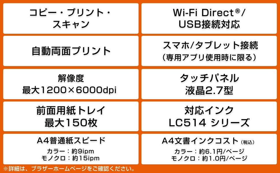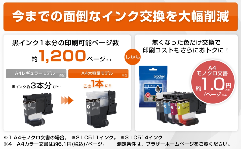 ●対応消耗品:LC514BK/LC514C/LC514M/LC514Y